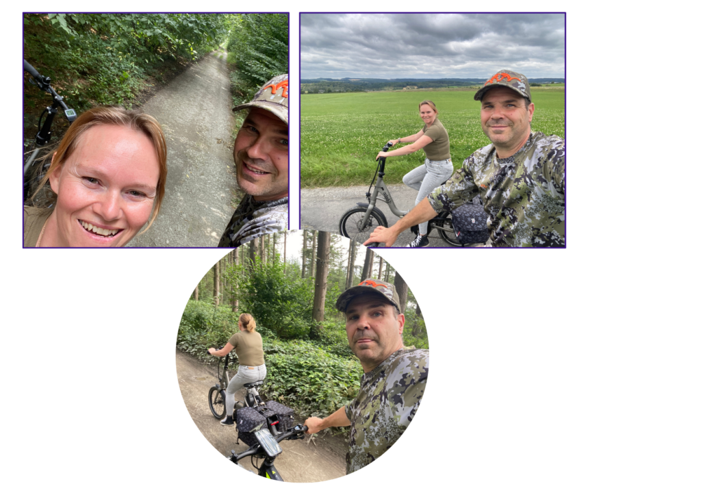 Dinsdagochtend verzamelen we alles wat mee moet naar de Ardennen. We rijden apart omdat K. zijn jachtgerief niet samen in de auto kan met ons gezin en 2 honden. Mijn elektrische fiets gaat voor de eerste keer mee. Het is een vouwmodel. Daarvoor heb ik hem niet speciaal gekozen maar vooral omdat hij een kleinere kader heeft. Op de kleinste maat in de volwassene fietsen krijg ik altijd rugpijn. Geen excuses meer en dat zie je aan mijn kilometerteller. Super blij mee! Als het goed weer is, rijd ik regelmatig met de fiets naar het werk. A. gaat vanaf september in dezelfde stad, als mijn werk, naar school. Misschien kunnen we samen rijden? Of is dit een illusie? Met je moeder naar school rijden zal waarschijnlijk niet cool zijn?