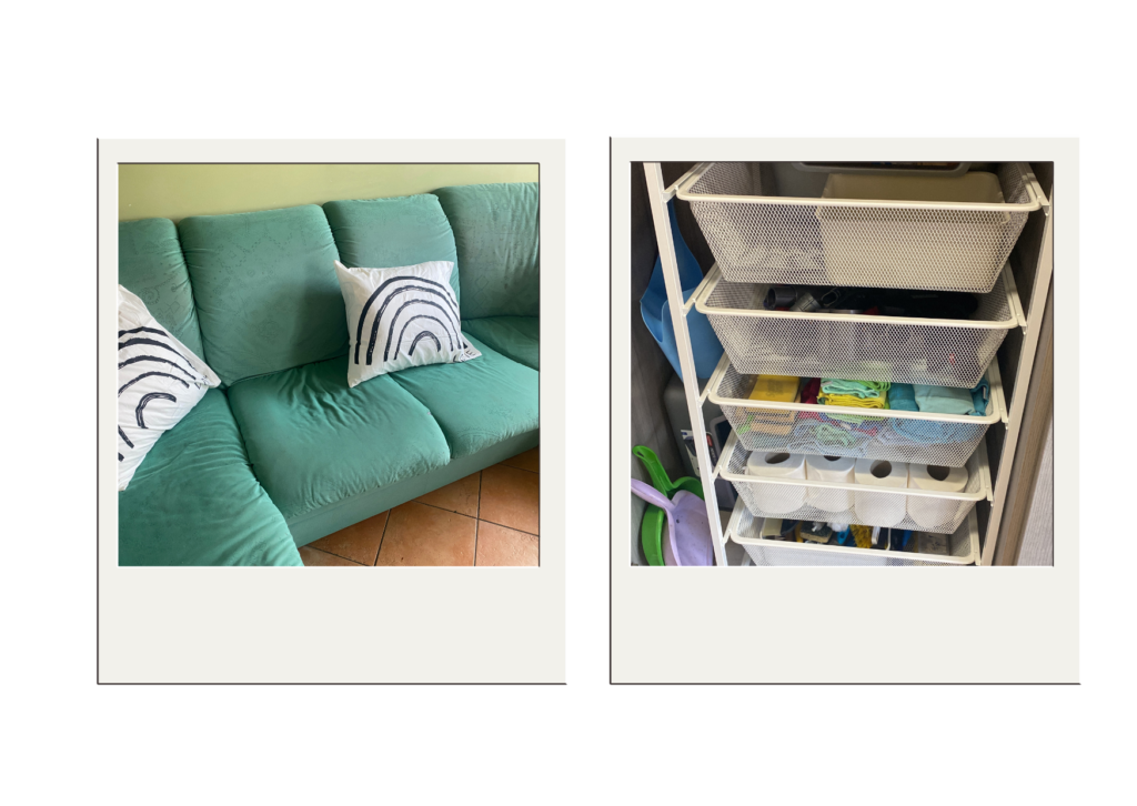 Als je niet op vakantie gaat, heb je meer tijd om alles te bekijken in je huis. Zo viel het mij op dat ik een rommelige kast heb waar de aardappelen en de ajuinen liggen. Ik wilde al heel lang een soort rekje of bakje om die twee dingen proper weg te leggen. Het kwam er maar niet van. Het ging regelmatig uit mijn gedachten want als de deur dicht is, wel ja dan is ze dicht hé. Het is pas wanneer je iets ziet dat er een reactie komt. Ik kon maar niet beslissen wat het beste (rekje of bakje) zou zijn tot vandaag. Veel tijd, regenachtige dag, zin in een activiteit = namiddag in Ikea doorbrengen is een mooi tijdsverblijf. Uit die winkel (en met L.) kom je niet buiten zonder nog andere dingen. Volgende dingen kregen een leuk plekje in ons huis: 4 nieuwe kussens + sloop, 2 planten met potje, waterverf, hoofdkussen voor A., 2 lectuurbakken, bakje voor in het rek.