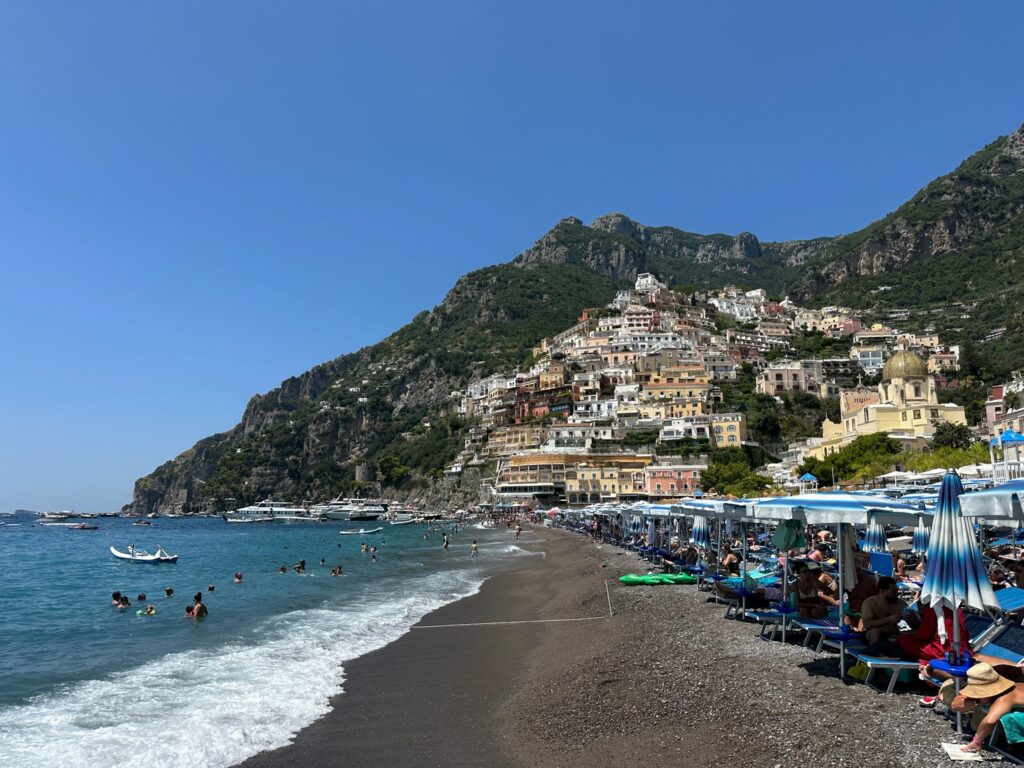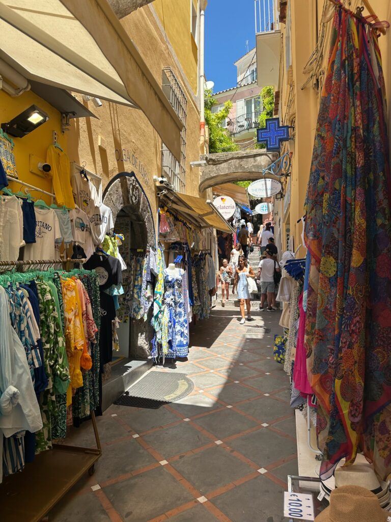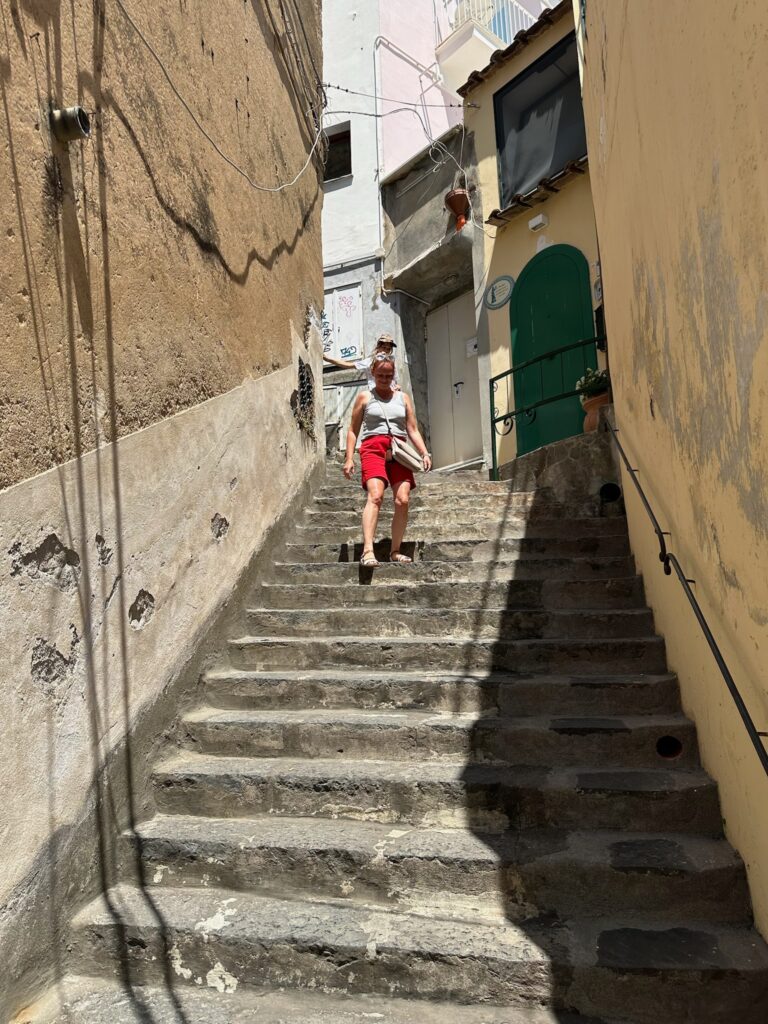 Eens buiten Napels kom je in het mooie Positano. We vinden bovenaan de berg een parkeerplaats. het stadje ligt helemaal beneden en via vele trappen kom je via smalle straatjes uiteindelijk in het dorpje terecht. Met vele trappen bedoel ik veel, heel veel.