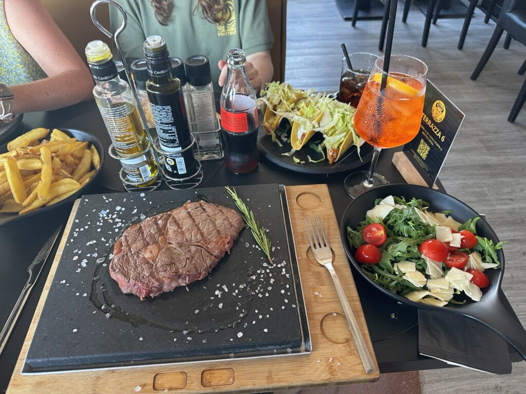 We zijn nog op tijd om een duik in het zwembad te nemen. Dat doet deugd. ’s Avonds gaan we terug bij Marcello eten. Hij herkent is ons en blij van ons te zien. Grappig dat we kunnen communiceren zonder dat hij een woord Engels spreekt of begrijpt. 2 Pasta’s en 1 pizza worden er besteld. A. kiest voor French Fries met worst. Het lijkt een beetje op een hotdog in stukjes maar met de smaak van een salami.