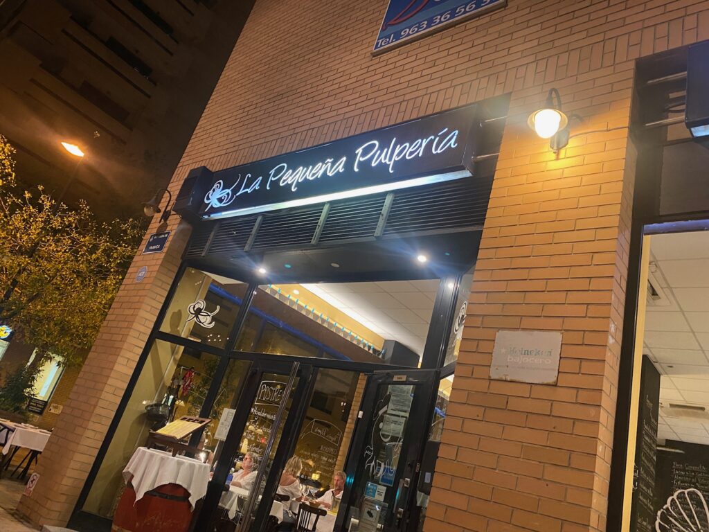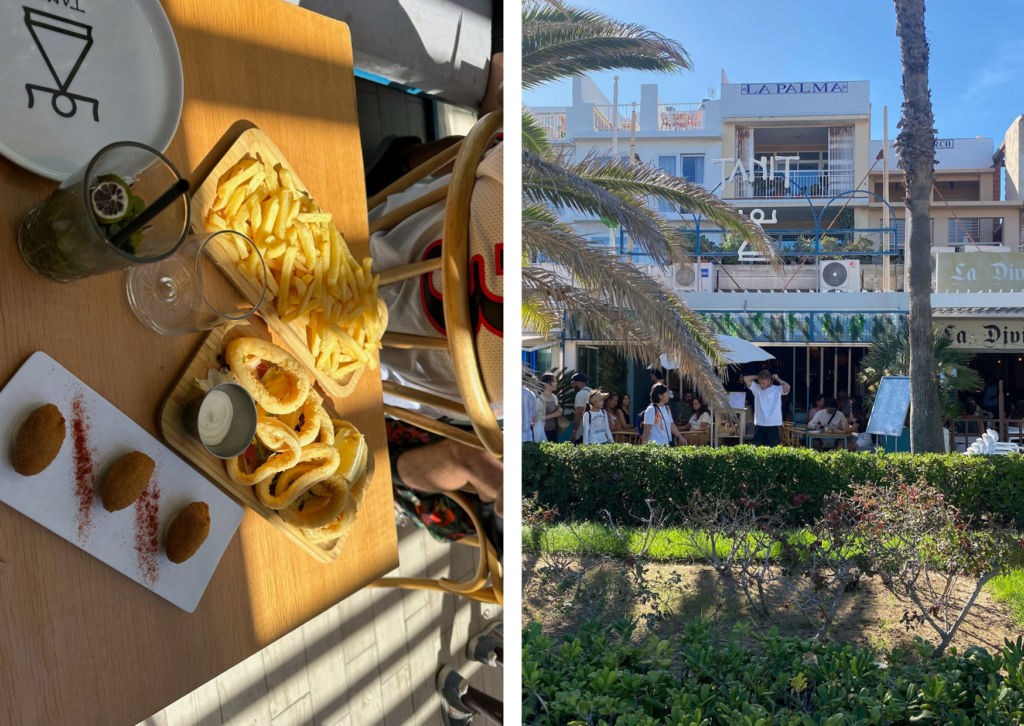 Van al dat wandelen krijgen we honger. Omdat we de omgeving nog niet goed kennen en vele restaurants nog niet open zijn, besluit ik dat we beter iets eten dat we kennen, pasta of pizza. Ik bestel pasta met pesto en gamba’s. Slechte idee ooit! De gamba’s lijken kleine garnalen en de pasta is droog. Geen aanrader om bij een Italiaan in Spanje te gaan eten terwijl we daar de volgende dagen steeds veel volk zagen zitten.
