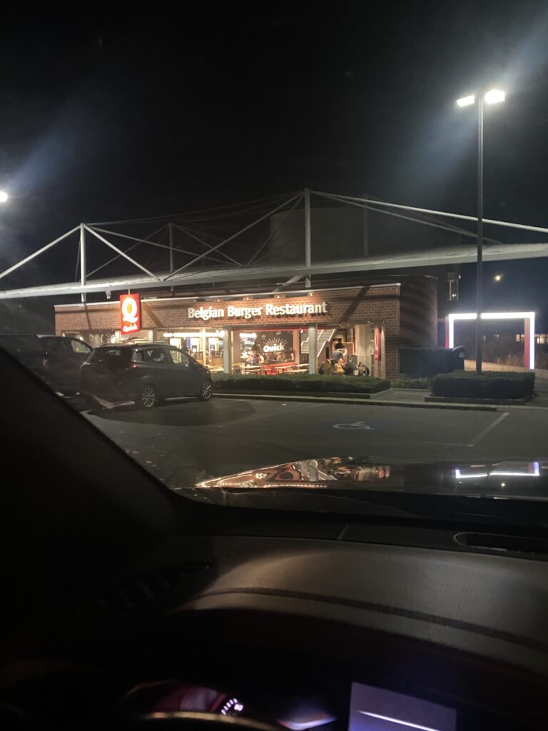 ’s Avonds pik A. op aan het station. Haar vriendje neemt een paar minuten later de trein terug naar huis. Lief hè, dat hij haar gezelschap houdt en dan alleen terugrijdt. A. heeft nog een ‘hongerke’. Dat is toevallig dat we een Quick passeren. We zijn hier ondertussen het 6e jaar Kerst aan het vieren en de Quick zijn we nog nooit binnen gestapt, altijd naar de MacDo. Ze wist dus niet wat ze direct kon kiezen. Uiteindelijk is zo voor Chicken Wings gegaan met een frietjes bedekt met Passendale en bacon. Dit zou veel te zwaar zijn voor mij zo laat op de avond. Voor haar ook want ze krijgt het niet op. Papa moet zich terug opofferen als we thuis zijn. De Passendale smaakt heel fel door en ik ben vooral zot van zachte smaken.